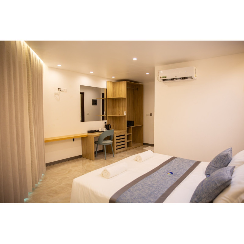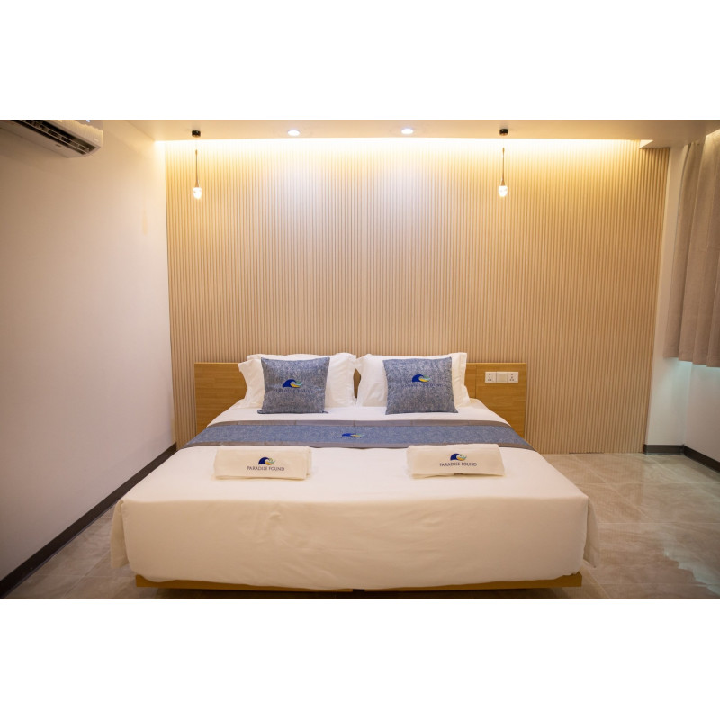 Comfortable Accommodations: Paradise Found in Dhigurah offers family rooms with sea views, balconies, and private bathrooms. Each room includes air-conditioning, a work desk, and free WiFi. Dining Experience: Guests can enjoy a variety of dining options, including a sun terrace, restaurant, and bar. Breakfast selections include continental, buffet, and à la carte, featuring local specialties and fresh pastries. Leisure Facilities: The hotel provides a swimming pool, yoga classes, and film nights. Additional amenities include a coffee shop, outdoor seating area, and bicycle parking. Prime Location: Located a few steps from Dhigurah North West Beach, the hotel is near attractions such as Dhigurah Island and Dhigurah Airport.